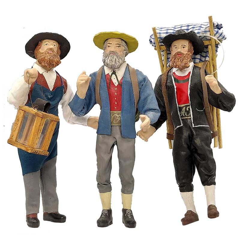 Die Figuren werden handbemalt und liebevoll mit Stoff bekleidet und kaschiert, wobei die Falten der Gewänder
