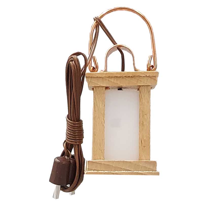 Diese sehr schöne Holzlaterne mit Kupferbügel ist mit ca. 50 cm Kabel, Stecker und LED-Birne fertig montiert