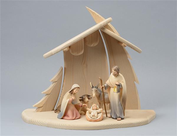 LI Familienstall Tannenbaum + 5 Figuren Licht Krippe